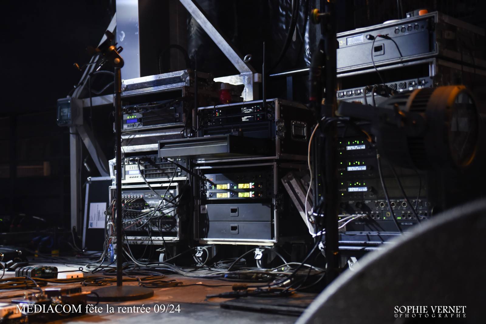 La scène a été installée par deux personnes de notre équipe en moins de deux heures. Un dispositif éclairage, et sonorisation a également été rajouté.